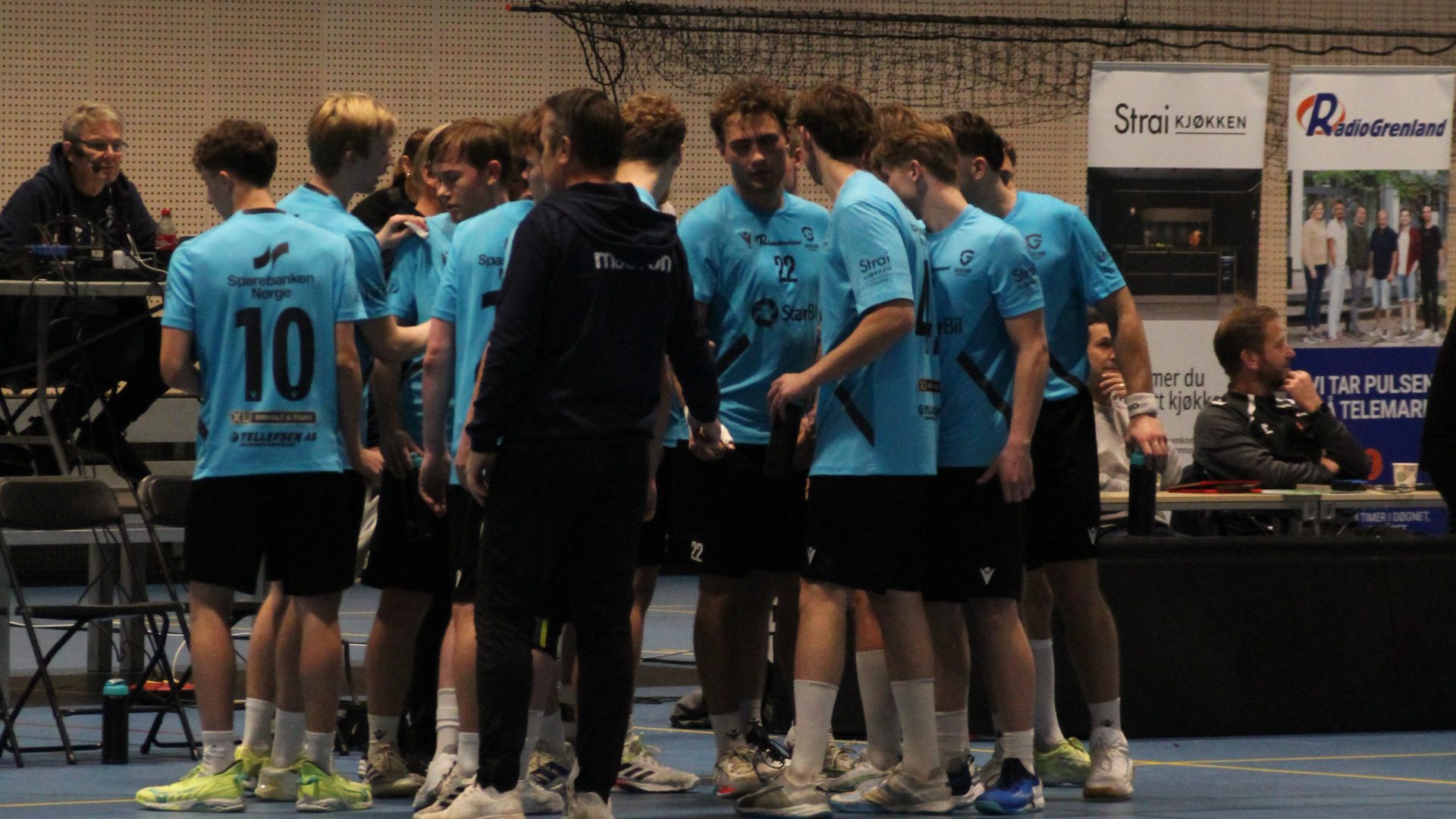 De første minuttene ble preget av effektivt angrepsspill fra begge lag. Niclas Rødal viste seg frem på venstrekanten med flere gode avslutninger, mens keeper Vetle Kavli Garstad bidro med viktige redninger i motsatt ende. Etter ti minutters spill var stillingen 11–9 i favør Grenland, mye takket være et solid samarbeid mellom bakspillerne Teodor Landsverk Dahl og Nicolai Nilsen Rønningen, som stadig fant åpninger i Bjørnars 6–0-forsvar.